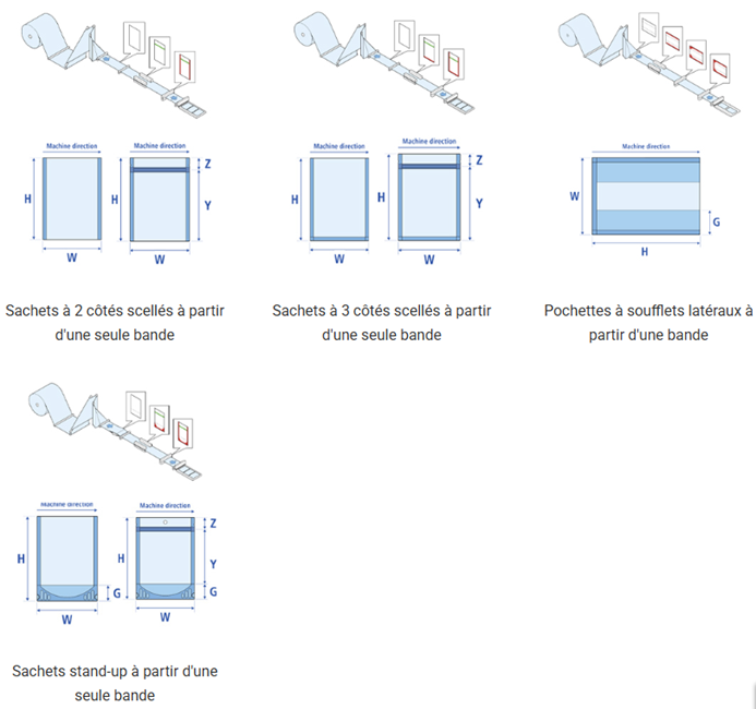 - Pouches à maintien vertical, à partir d’une bande, avec ou sans fermeture à glissière