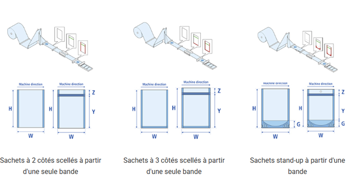 - Pouches debout (stand-up), à partir d’une bande, avec ou sans fermeture à glissière