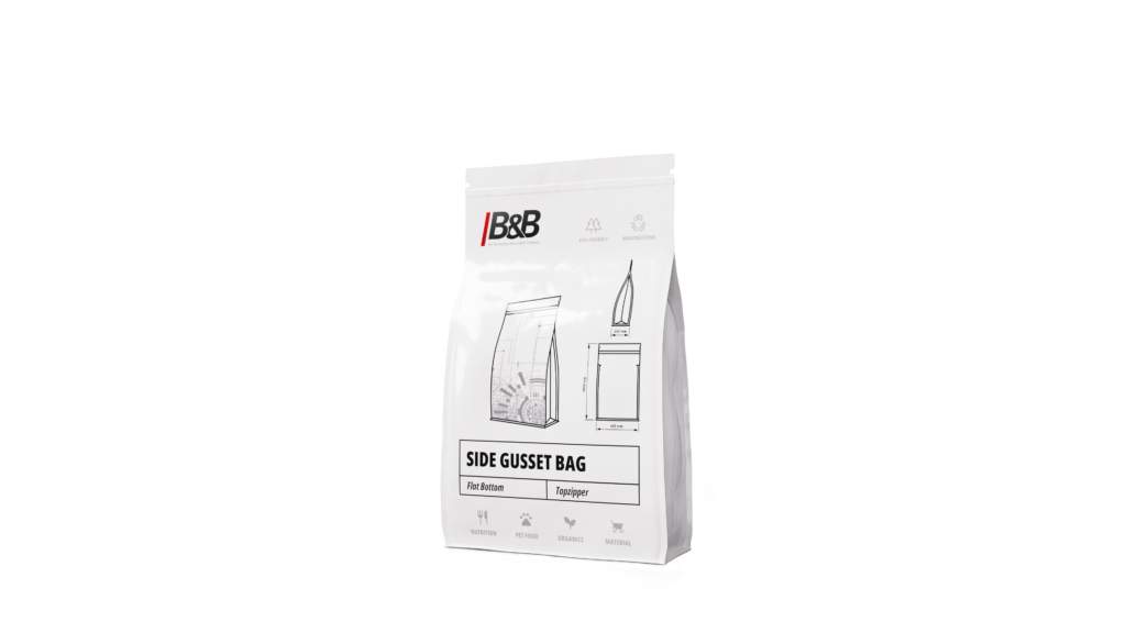 - Sacs à soufflets latéraux avec longueur de soufflet identique au recto et au verso du sac